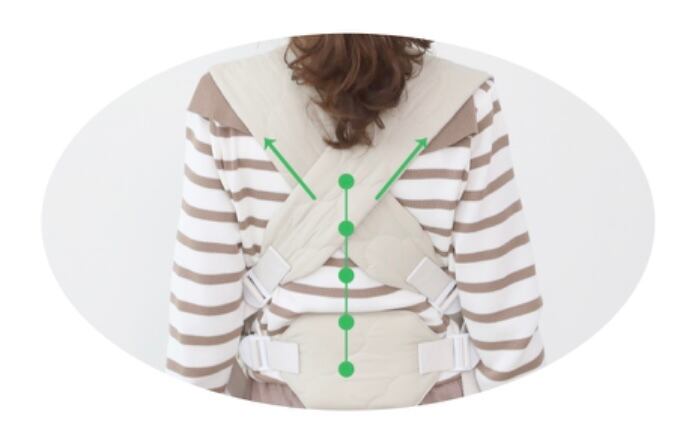 下板がおへそ位置に来るように着用してください。子供が入ると重量感が生じ 安定して着用できます。