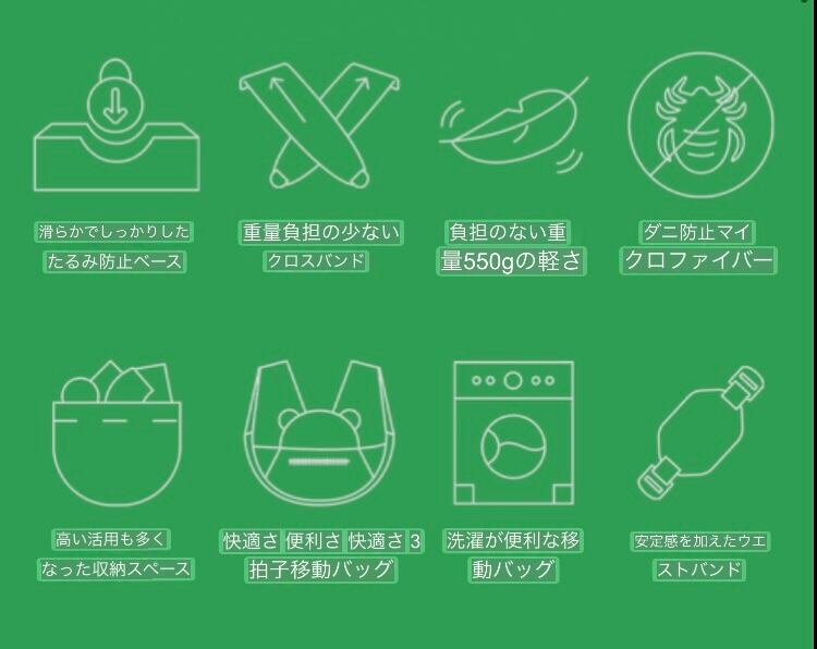 ※4kg以上の子供や長時間ご使用の際には別売りのウエストベルトをご使用いただく事で保護者様がより安定して着用する事ができます。