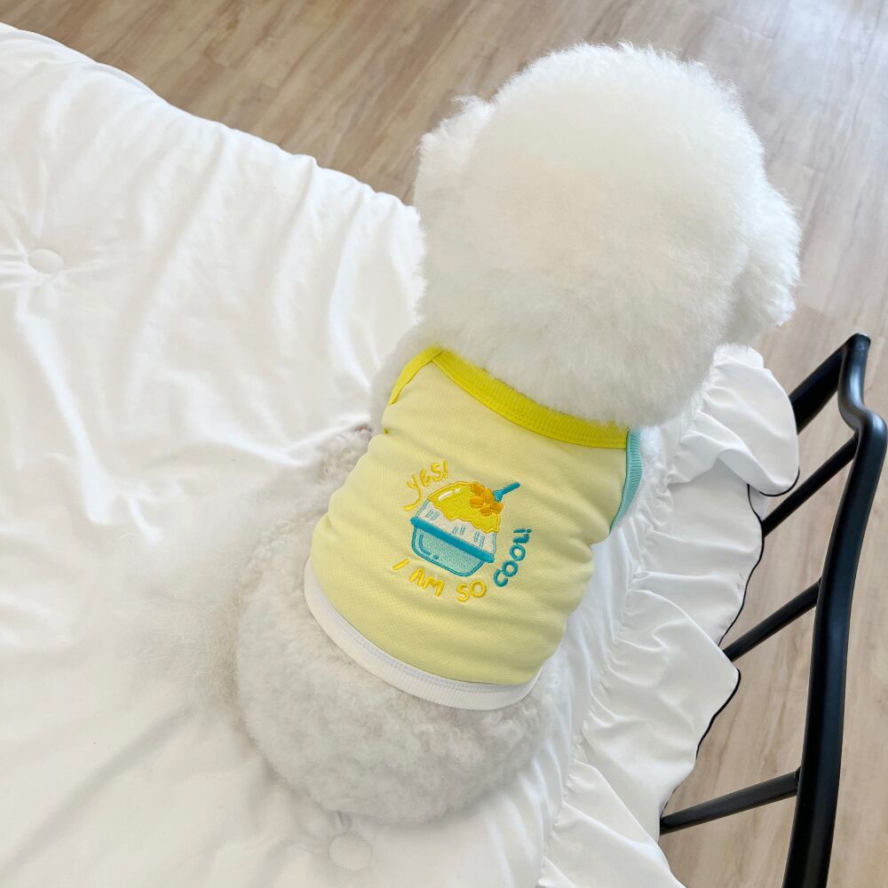 キュートなかき氷の刺繍とともに。