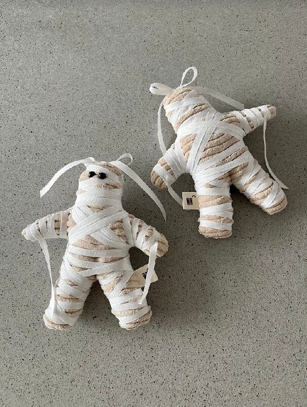 包帯で巻かれたミイラは手縫いで固定されているので、簡単に解けない様になっております。