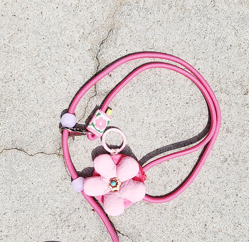 ピンクカラーは花のような感じで つなぎ目のディテールを見ると花柄のウェビングストラップになっています。