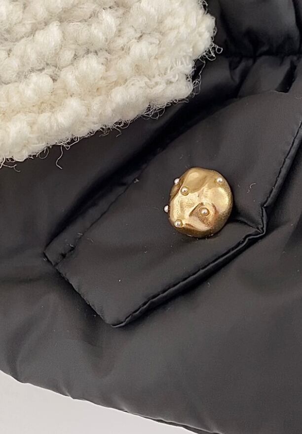 -左右のアンバランスなゴールドパールコンビボタンとツイストボタン。