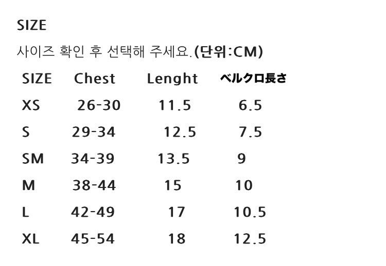44はベルクロを3-4cm残してベルクロを伸ばして取り付けた時の胸囲です。