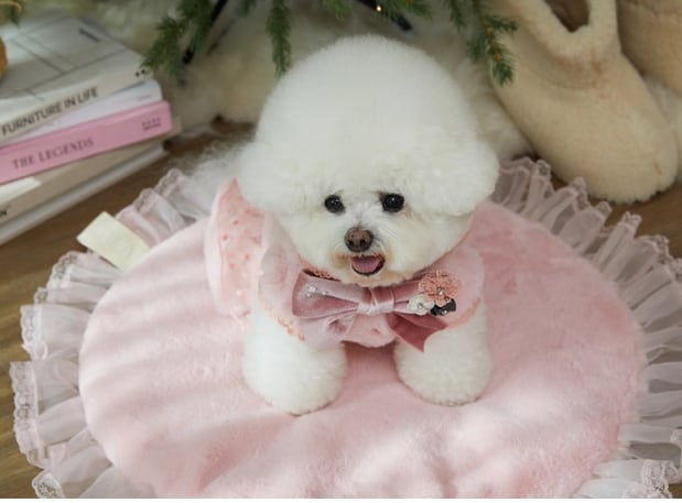 - たっぷりのレースで踊るような軽やかなフリル。