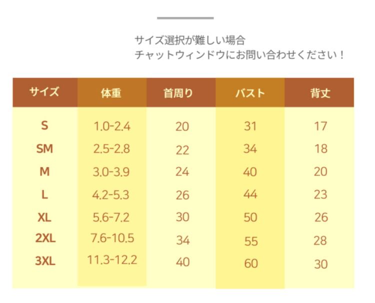 胸囲のおすすめサイズをご参考にしてください。