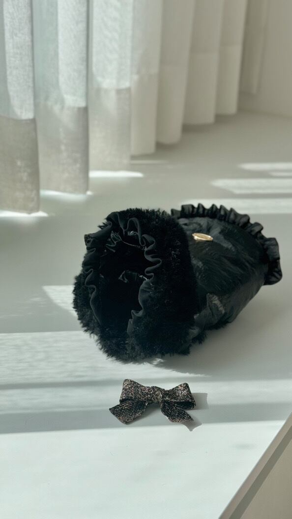 【即納】《Raffine mong》Reversible Snow Love Padded Vest - Black